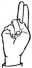 На ћирилици написано ПАУН СЛОВИЋ састоји се из 10 слова [?]. Исписано ћириличном једноручном азбуком за глувонеме: